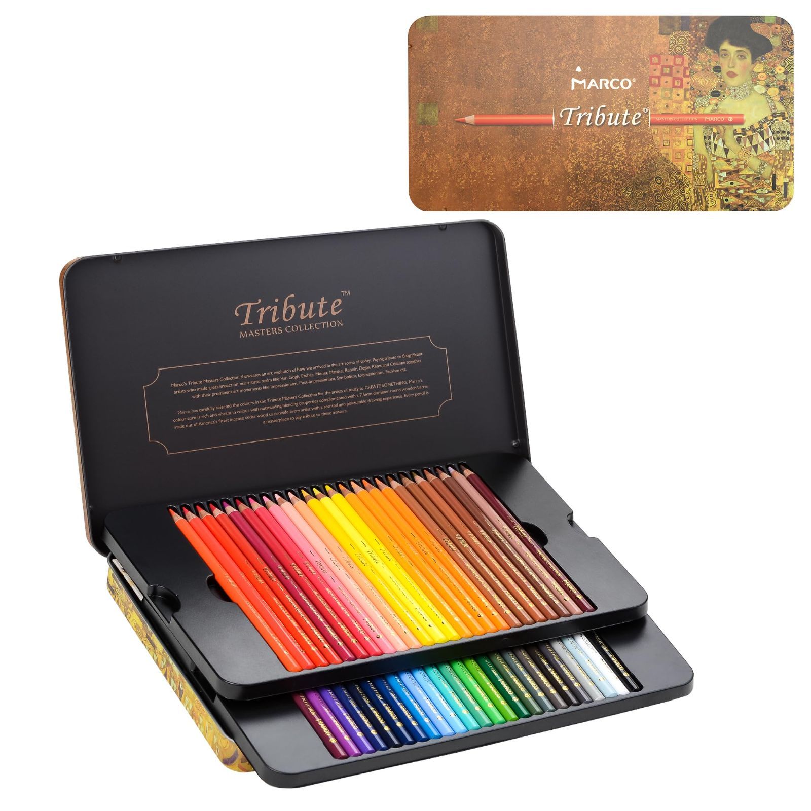 Marco 色鉛筆 油性48色 学生 用 鉛筆削り付き 色鮮やかで重ね塗り可能な10層 プロ大師レベル 大人向け多色色鉛筆セット鉄箱入 プレゼント3300油性-48色