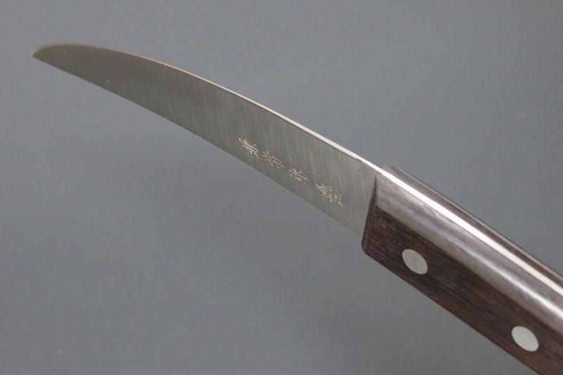 このKC-337頭オトシは、反りながらカーブする細く尖った形状が特徴で、プロの食肉現場や、ハンターが鳥や猪、鹿などのジビエを捌く際に使用されています。