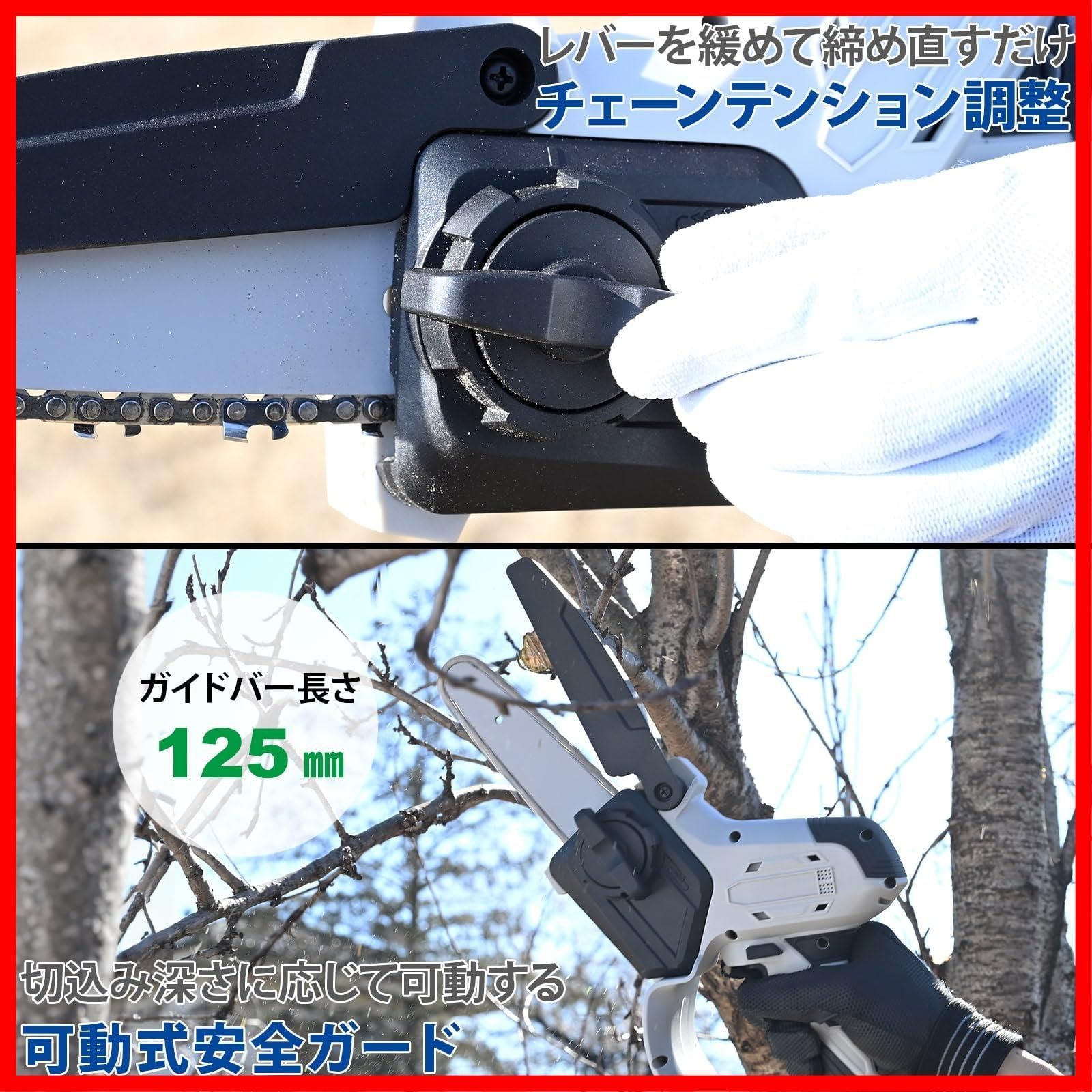 ●多くの刃を持つソーチェーンを高速回転して枝や木材構造物を切断可能、片手で使用できるコンパクトサイズの充電式チェンソーです。