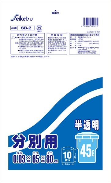 60点セット 分別用45 L半透明 SB 2 セイケツネットワーク ゴミ袋 ポリ袋
