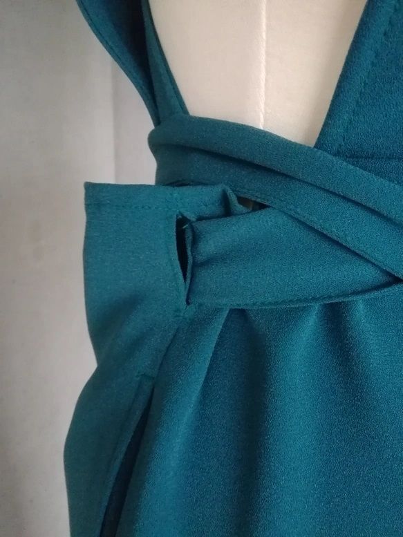 4 L 6 梨地ストレッチ ピーコックグリーン 茶道お稽古用エプロンウエストリボン127100 72 2