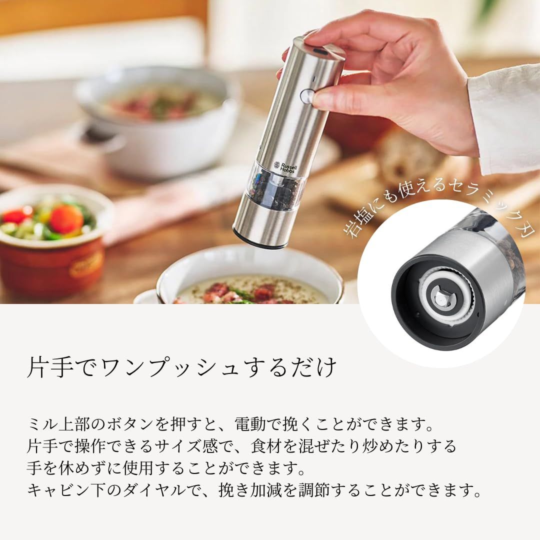 Russell Hobbs ラッセルホブス 充電式ミル ソルト ペッパー 2本セット ブラック 7942 JP BK 3ヶ月延長 黒胡椒 岩塩 片手操作 キャンプ プレゼント ギフト キッチン家電 モダン シンプル