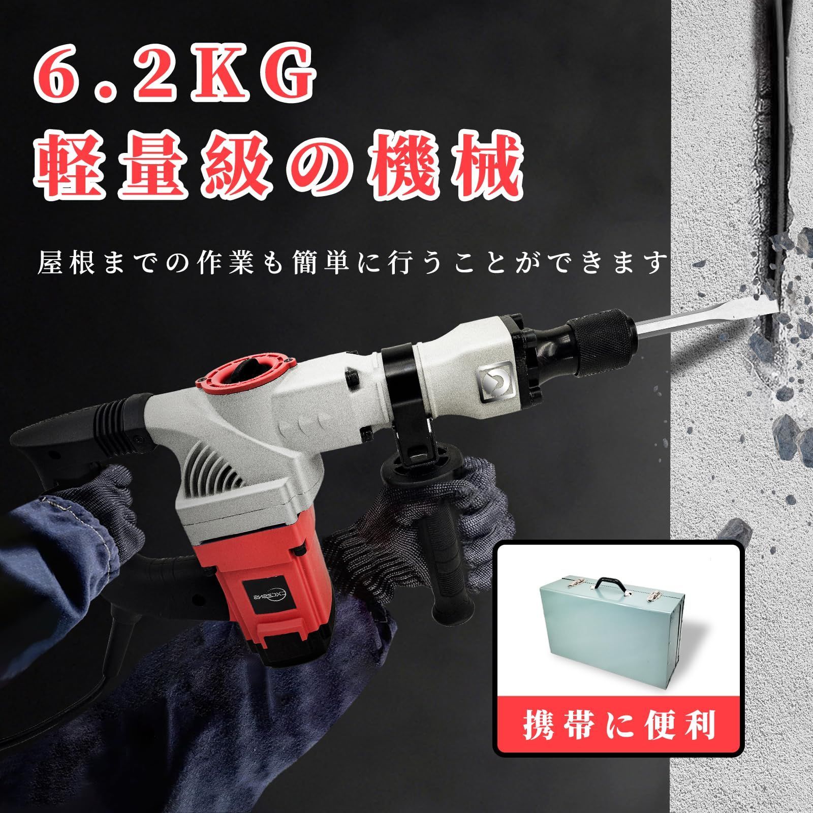 CXCESNS 電動ハンマー はつり機 打撃数4000 bpm コンクリートハンマー 六角シャンク 削岩機 破つりハンマー コールドチゼル 電動ピック 溝掘り 本体重量6 2 kg 軽量化 解体はつり機 強力モーター 2000W 建築 コンクリート 破