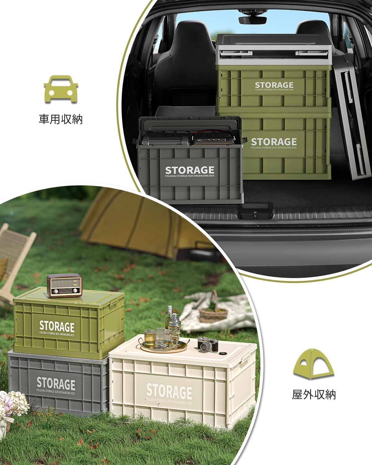【多彩なカラーバリエーション&サイズ展開】アウトドアに映えるオリーブグリーン、室内に調和するライトグレー・ダークグレー、明るく柔らかな印象のクリームホワイト。インテリアや用途に合わせて選べる豊富なカラーバリエーションをご用意。さらに8種類のサイズ展開で、家庭収納・キャンプ・車載など多様なニーズに対応します