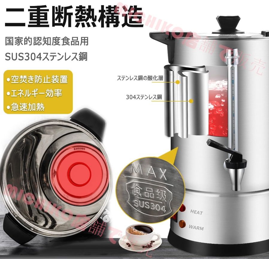 業務用コーヒーバケツ 電気ケトル 湯沸かしポット 電熱保温バケツ 8 L コーヒーポット 30 110℃ 温度調節 ビュッフェ用飲料ウォーマー 保温 保冷用 麦茶ポット コーヒー 花茶 ミルク 果茶 茶などを作る PSE認証
