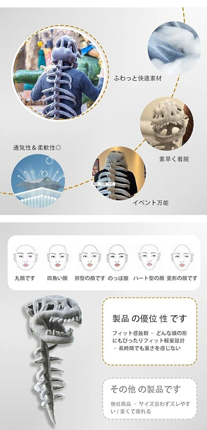 様々なシーンに最適:ハロウィン、コスプレ、演劇、テーマパーティー、恐竜をテーマにしたイベント、楽しい写真撮影用小道具などに最適です。大人用サイズもご用意しています。