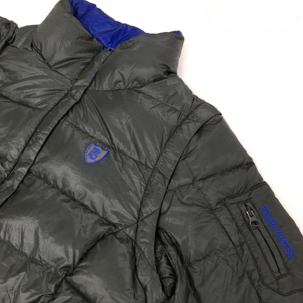 超 パーリーゲイツ 2 WAYナイロンダウンジャケット ダークグリーン系×ブルー 軽量 レディース 0 S ゴルフウェア PEARLY GATES