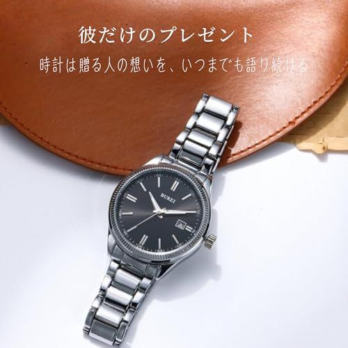 BUREI 腕時計 メンズ アナログ クオーツ シンプル 日付 防水 見やすいとけい ステンンレス メンズうで時計 フ?ラック ブランド シルバー おしゃれ 紳士 男性用 ビジネス カジュアル プレゼント ウォッチ 7861 cb 24