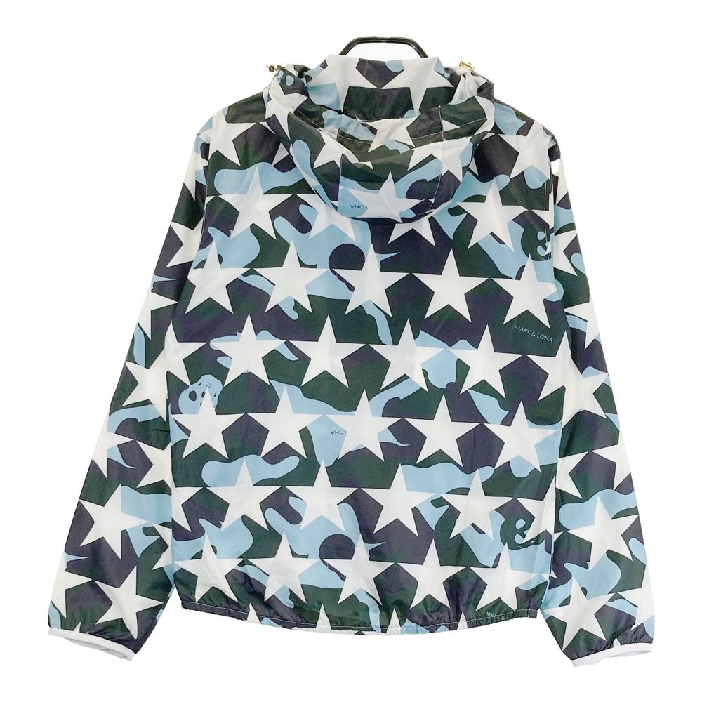 サイズ M MARK-LONA マークアンドロナ 裏メッシュ ジップパーカー ジャケット カモフラ×スター 総柄 ブルー系 ゴルフウェア メンズ ストスト