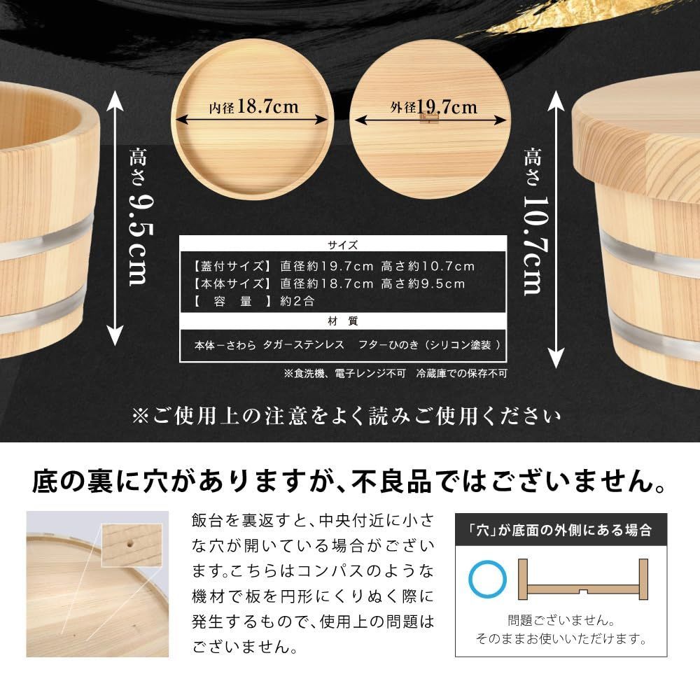 檜王 おひつ 2合 本体 さわらフタ ひのき 直径19 7 10 cm 木製 ヒノキ 檜木 さわら