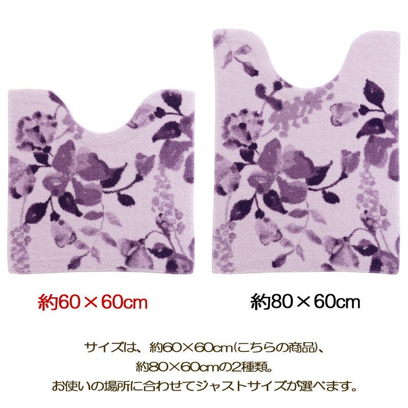 トイレマットのサイズは、60×60cm(こちらの商品です)、80×60cmの2種類。スペースにあわせてお選びください。裏面には滑りにくい加工が施されています。