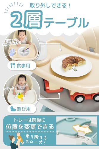 【赤ちゃんを守る標準装備】お手入れ簡単なテーブル&テーブルカバー、落下を防ぐ5点式安全ベルトで赤ちゃんも安心。