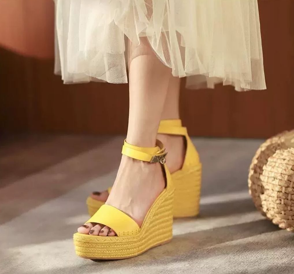 サンダル ウェッジソール バックル 厚底 オープントゥ 韓国