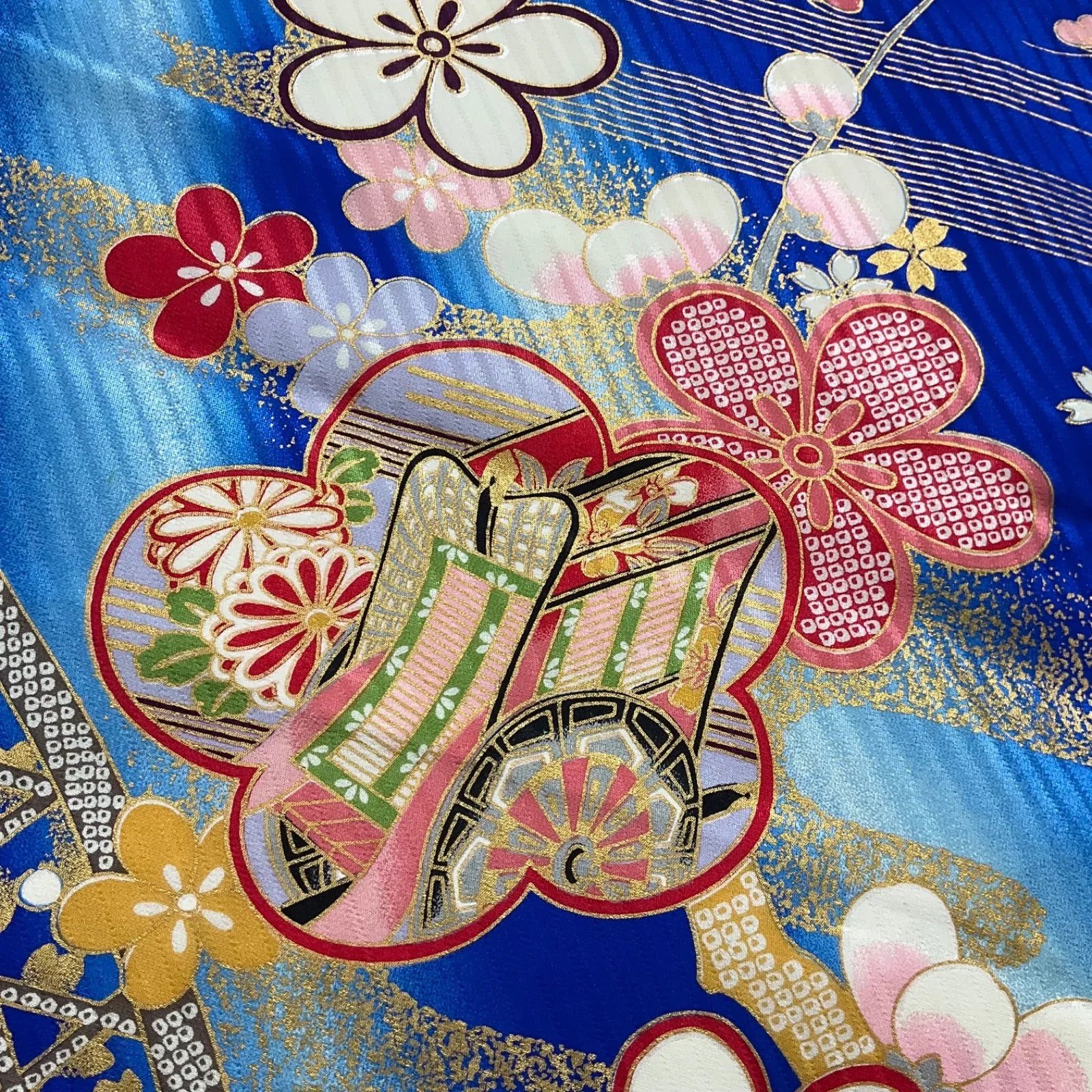 素材は着物正絹 裏地 化繊 です。