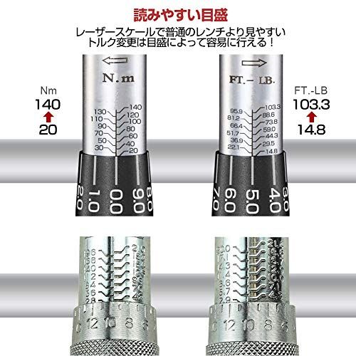 トルクレンチ プレセット型 車 バイク修理レンチ タイヤ交換 差込角9 5 mm 3 8インチ 20 140 N m 12 13 14 17 1 4変換ソケット 2変換ソケット付き ソケットレンチ ケース付き 66 ab 0 a 8 d