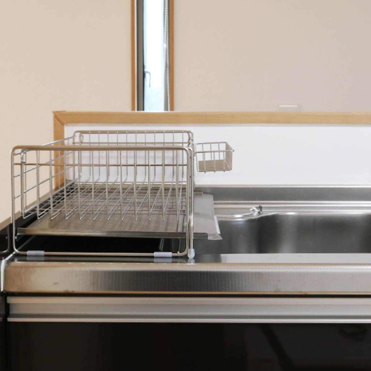 ●シンクサイドのわずかなスペースを利用して使える伸縮式の水切りラックです。