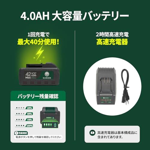 迅速に発送 NARION ナリオン 42 V 充電式芝刈り機 刈払機 コードレス 電動 充電器 4 Ahバッテリー 付き f 2 bb de 3