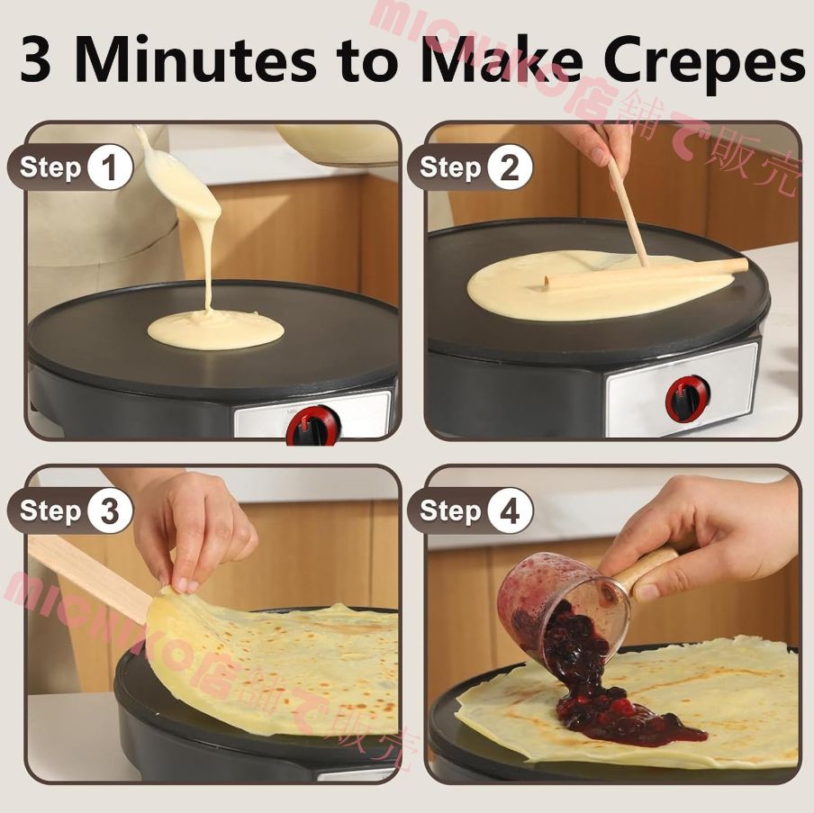 【時間と労力を節約】広い調理エリアにより、ご自分のキッチンでレストランスタイルのクレープを簡単に作ることができます。生地を薄く広げるだけで、数秒でクレープが焼けます。完璧な分散、滑らかな質感、簡単にひっくり返すためのスプレッダーをお勧めします。