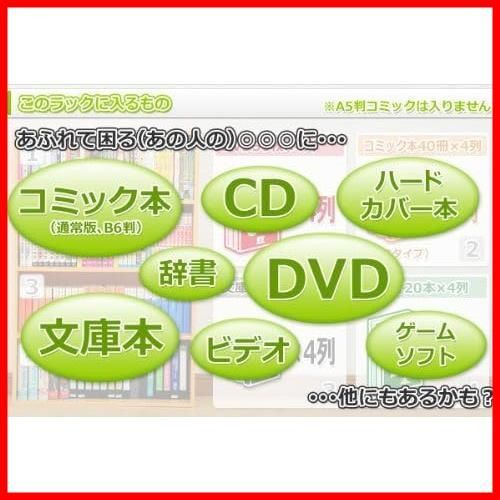 【スリムだけど大容量】コミック本なら約240冊とたくさん収納できるので、お部屋をすっきり片づけられるラックです。収納目安(最大) : コミック240冊、DVD216枚、文庫本180冊