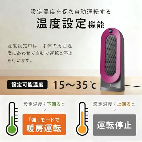 【人感・室温のWセンサーで快適に効率よく節電!】室温センサーと人感センサーを搭載!省エネも、速暖もお任せの、賢く温めるセラミックヒーター。センサー非搭載モデルと比較し、消費電力量を約33%削減!人感センサーが人の動きを感知して自動でON/OFF。自動OFFの時間は2分・5分・10分と切り替え可能。帰宅時やトイレに入った瞬間、お風呂から上がった後など、自動スイッチONですぐにポカポカ!人がいない時には自動的にOFFになるので、消し忘れの心配もなくなり電気代の節約にもつながる省エネヒーター。消費電力を抑える『省エネECOモード』を搭載しており、1535の間の設定温度に合わせて自動運転する「室温センサー」は、部屋の温度を感知し無駄に暖めすぎることもなく、快適な状態の室温を保つことができます。