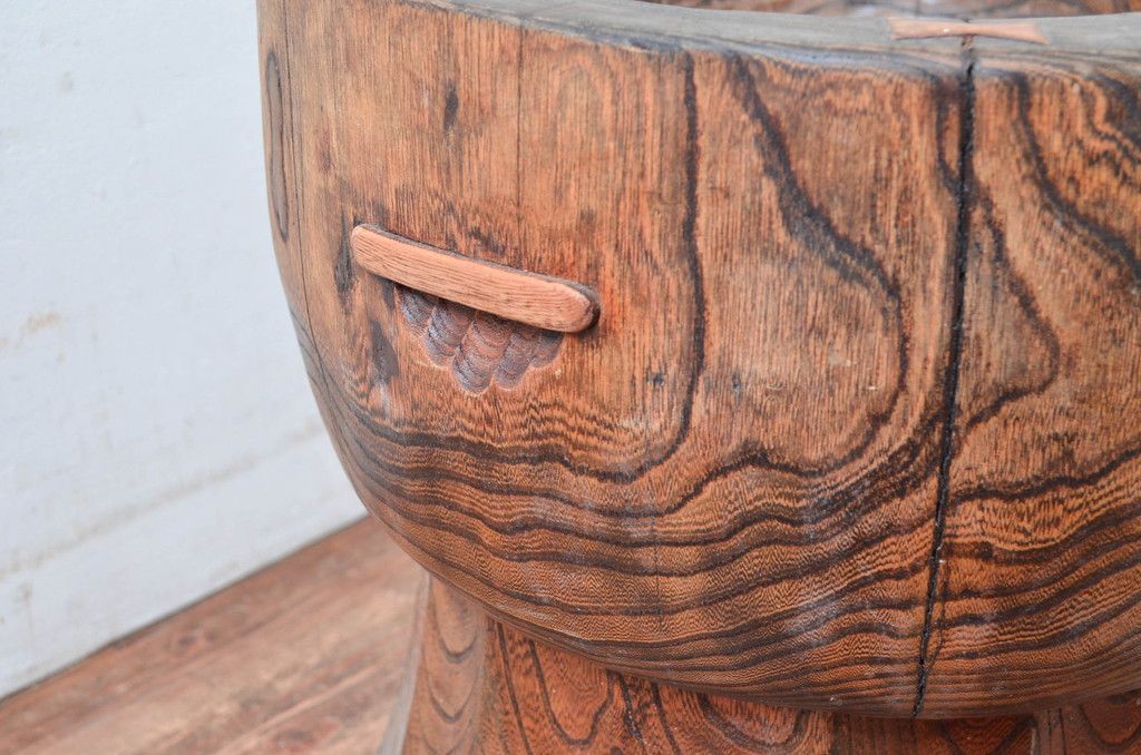 事前問合せ必須 臼 和製アンティーク ちぎり木付き 欅 ケヤキ材製 ウス うす ディスプレイ DIY 古道具 千切り 契り木 リペア 発送まで3週間前後 R 082033