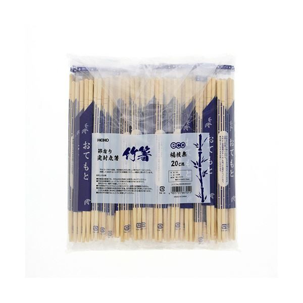 シモジマHEIKO 割箸 竹丸箸 ポリ完封 楊枝なし 20 cm 4000膳 100膳