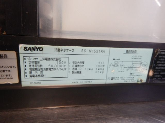 2008年製 サンヨー 冷蔵 ネタケース SS N 1531 RA mm 51 L 35 kg 150 cm