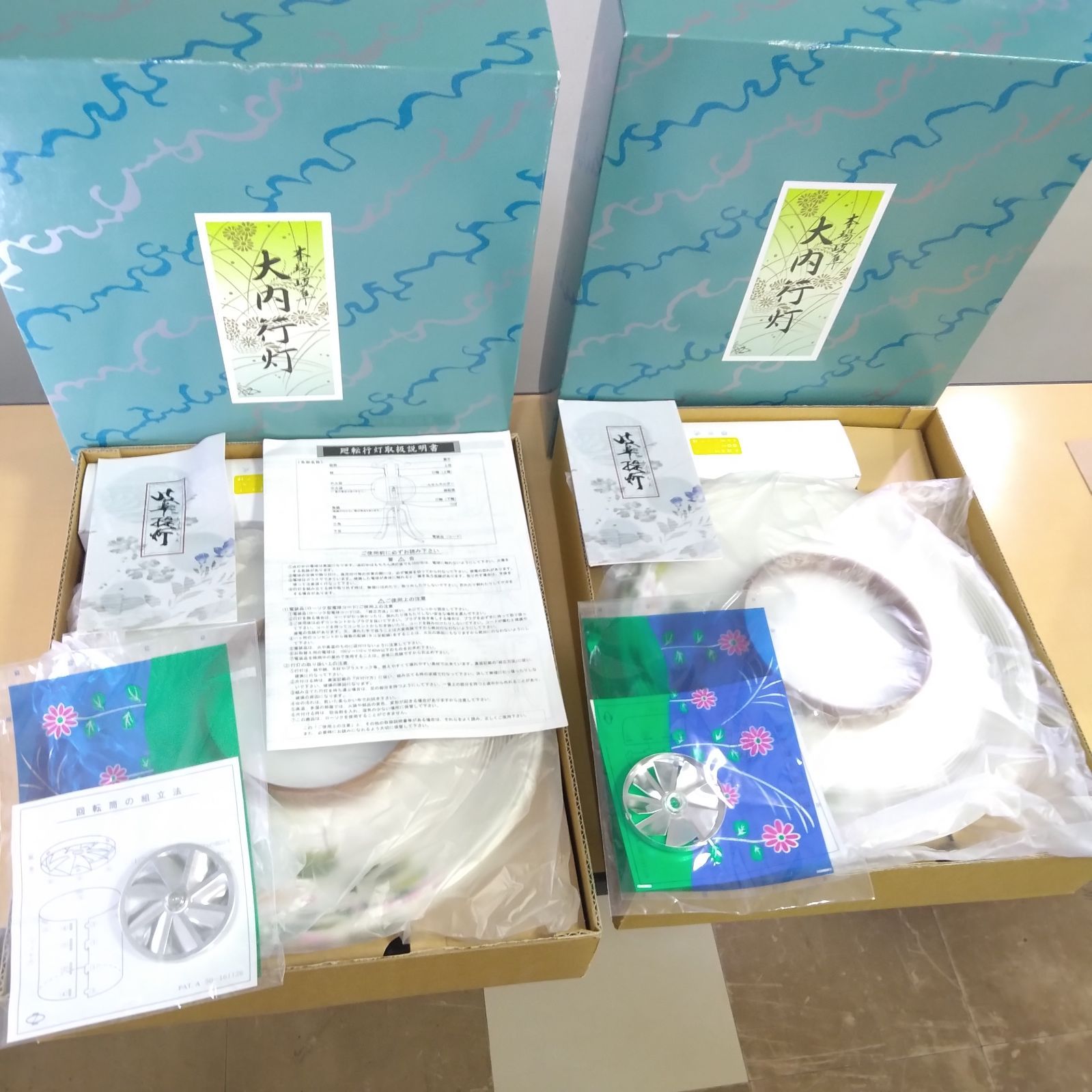 日本の伝統的な置き提灯である「大内行灯(おおうちあんどん)」の2点セットです。