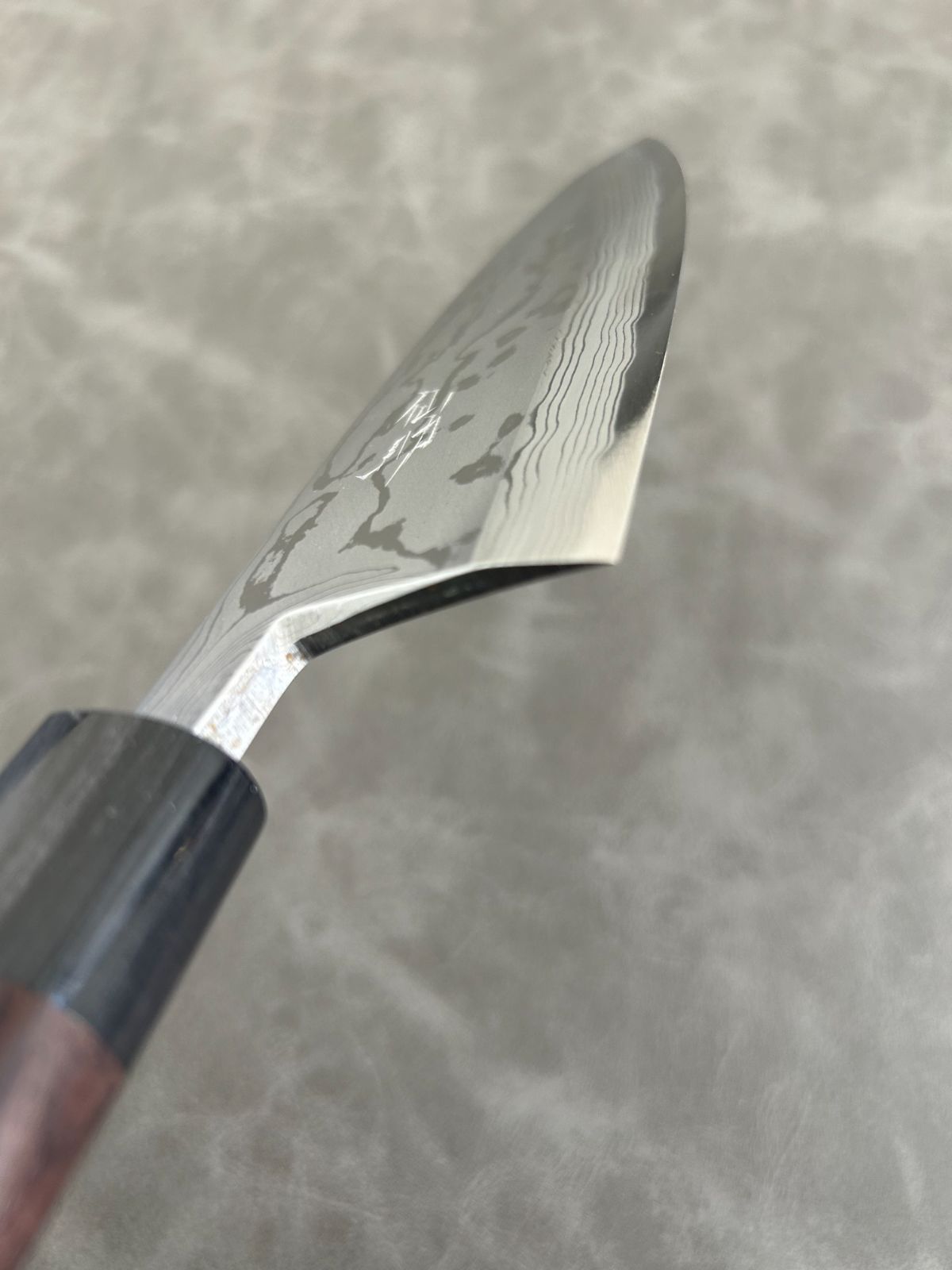 訳あり 仙助 包丁 出刃 ダマスカス 安来鋼青紙2号 180mm 紫檀シノギ柄 49