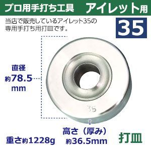 プロ用 焼入れ 手打ち工具 ハトメ アイレット 35 24 mm アイレット35用 打棒1打皿1 入 手打ち棒 144 5 49 打皿 直径78 高36 鉄製 焼き加工 大きいハトメ アイレット35番 テウチグ ボウ