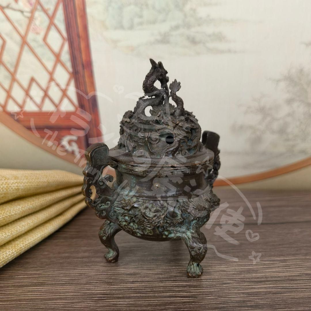 新年ギフト銅 細工 香道具 蓋置 竜紋炉 香炉 装飾品 工芸品 美術品 置物