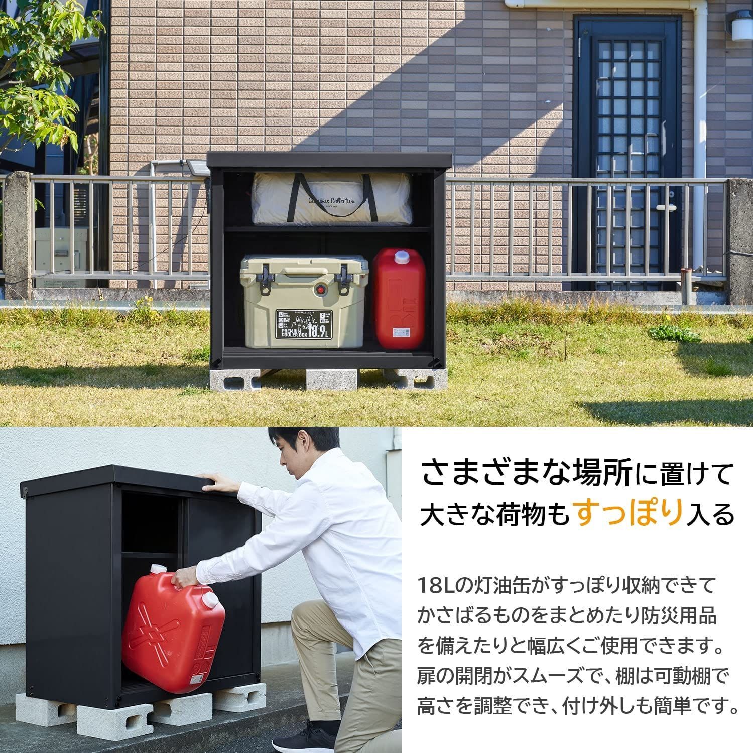 数量 物置収納庫 幅92 7 奥行49 5 高さ83 4㎝ 鍵付き 転倒防止設計 可動棚板付属 屋外用倉庫 山善 ガーデンマスター HSSB 098 BK ブラック