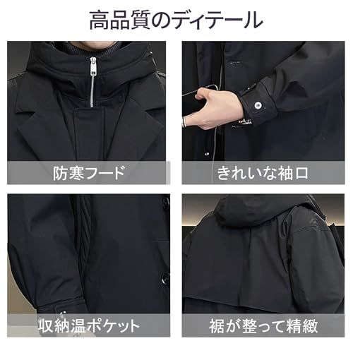 inotenka ダウンジャケット メンズ モッズコート ロングコート ミリタリー コート L-4 XL 厚手 防寒 防風 フード付き 大きいサイズ ミリタリージャケット ロング丈 中綿ジャケット アウター 秋 冬po 29 bff 070