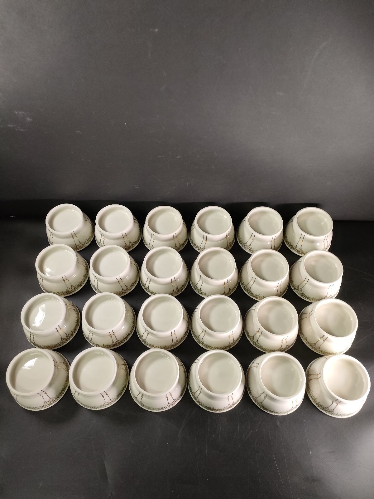 F 5 01 京焼 色絵錦若笹文高台小鉢24客 料亭 向付 小鉢 銘々皿 割烹 和食 飾物 置物 懐石