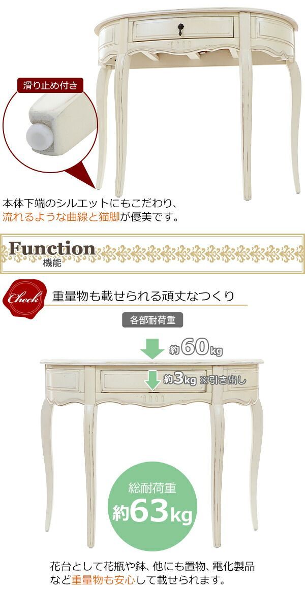 アンティーク調 コンソールテーブル ハーフムーン 半円 約W 108 5 約D 41 約H 85 cm クラシック調 レトロ調 木製 おしゃれ サイドテーブル スタンド 花台 飾り棚 ナイトテーブル 電話台 c antique f 76 選択 ブラウン