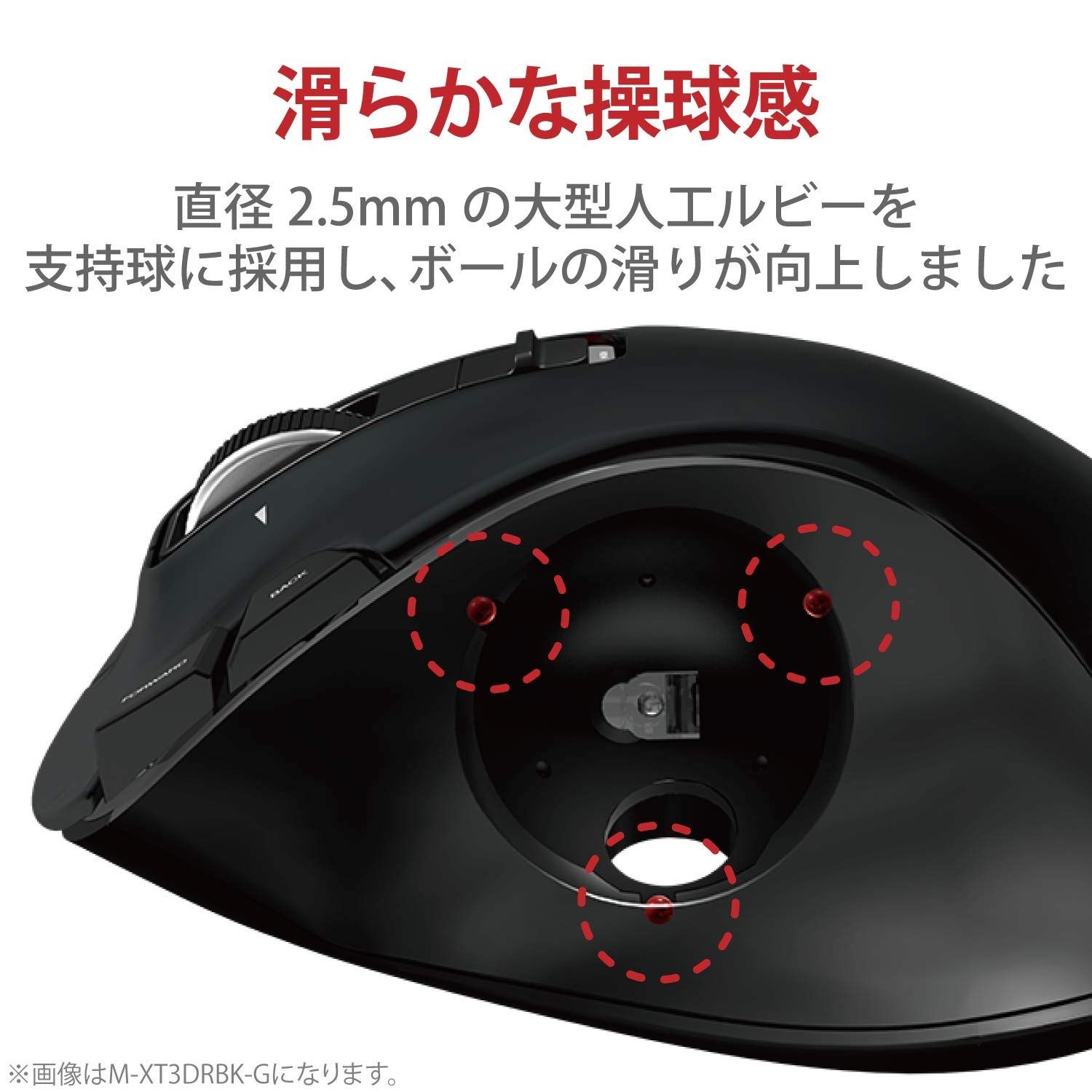 直径2.5mmの大型人工ルビーを支持球に採用することで、操球感が向上しています。また支持球の大径化により、支持球が手あか等のゴミに埋もれにくくなり、メンテナンス頻度が低減しています。