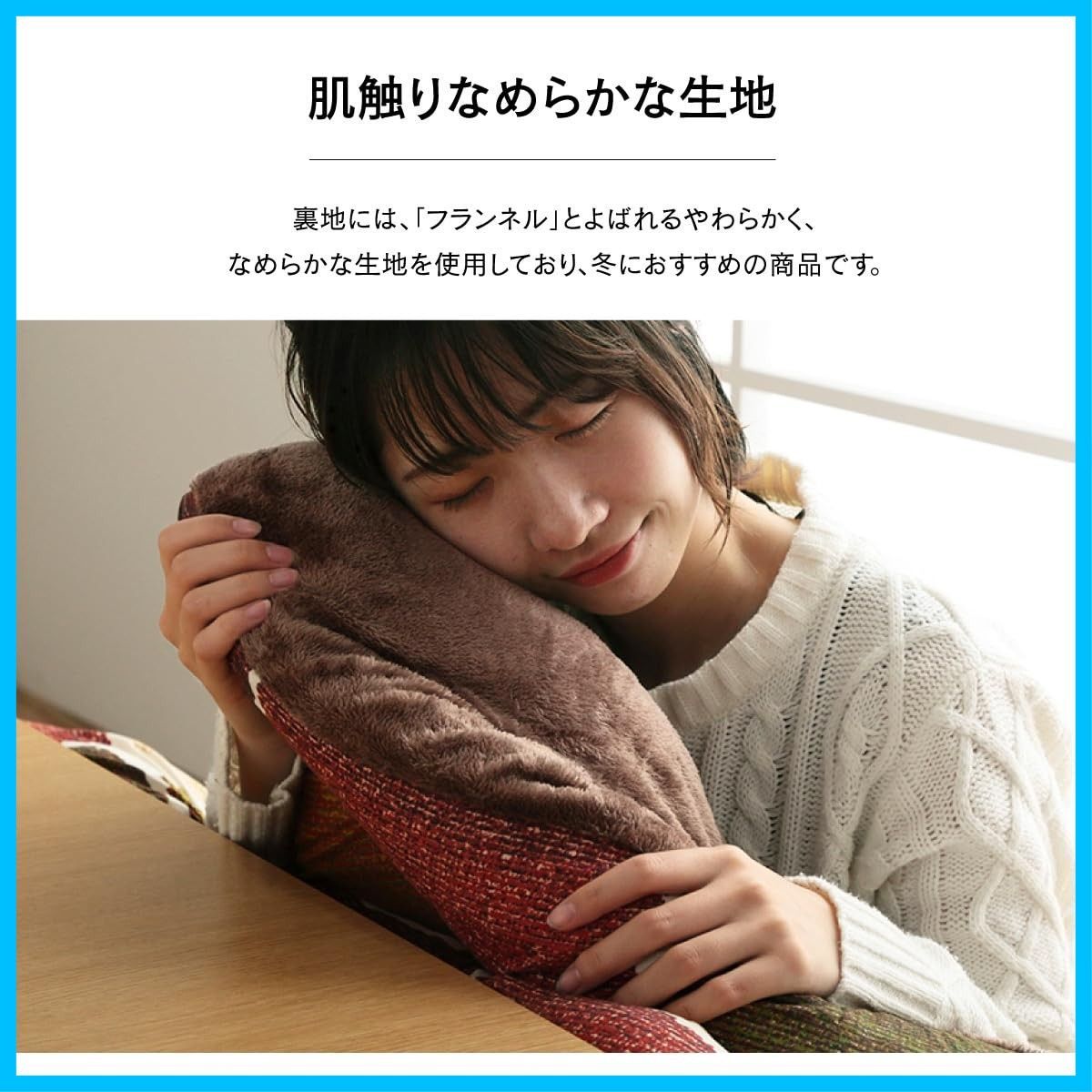 パッチワーク風のデザインをしたこたつ布団です。国内でわた入れをしています。側地にはポリエステル素材を起毛させた柔らかい生地を使用しています。部分暖房のこたつは電気代もおトクです。