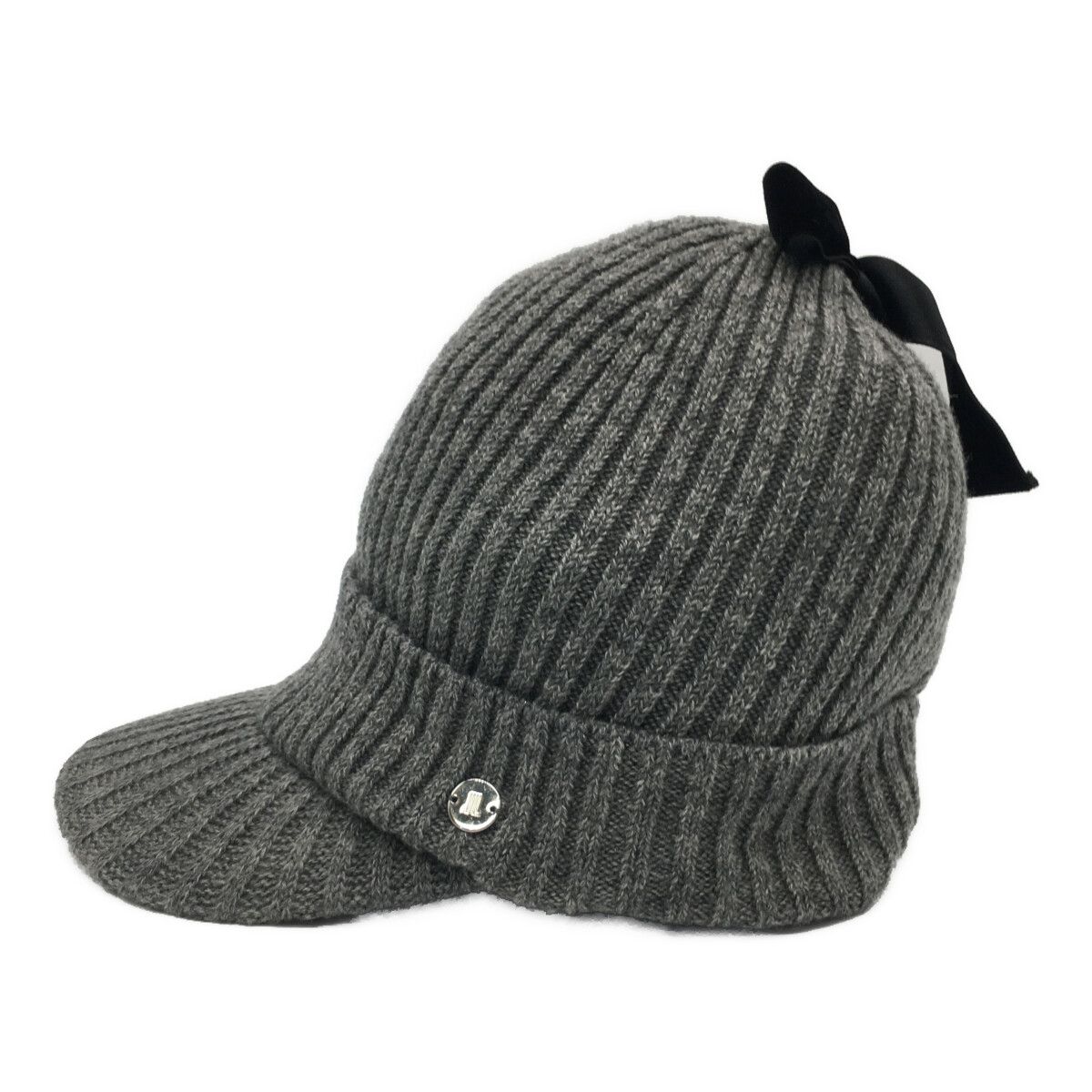 ランバンスポール LANVIN SPORT つば付ニット帽 フリー 56~59 cm グレー ベロアリボン&パール