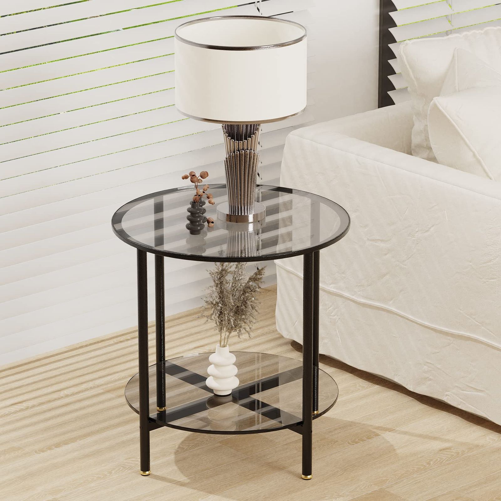 Artloge サイドテーブル 丸 ガラス ソファーテーブル ベッドサイドテーブル 2段 ベッド横 ソファ横 コーヒーテーブル ミニテーブル 丸型 おしゃれ 幅50×奥行50×高さ50㎝