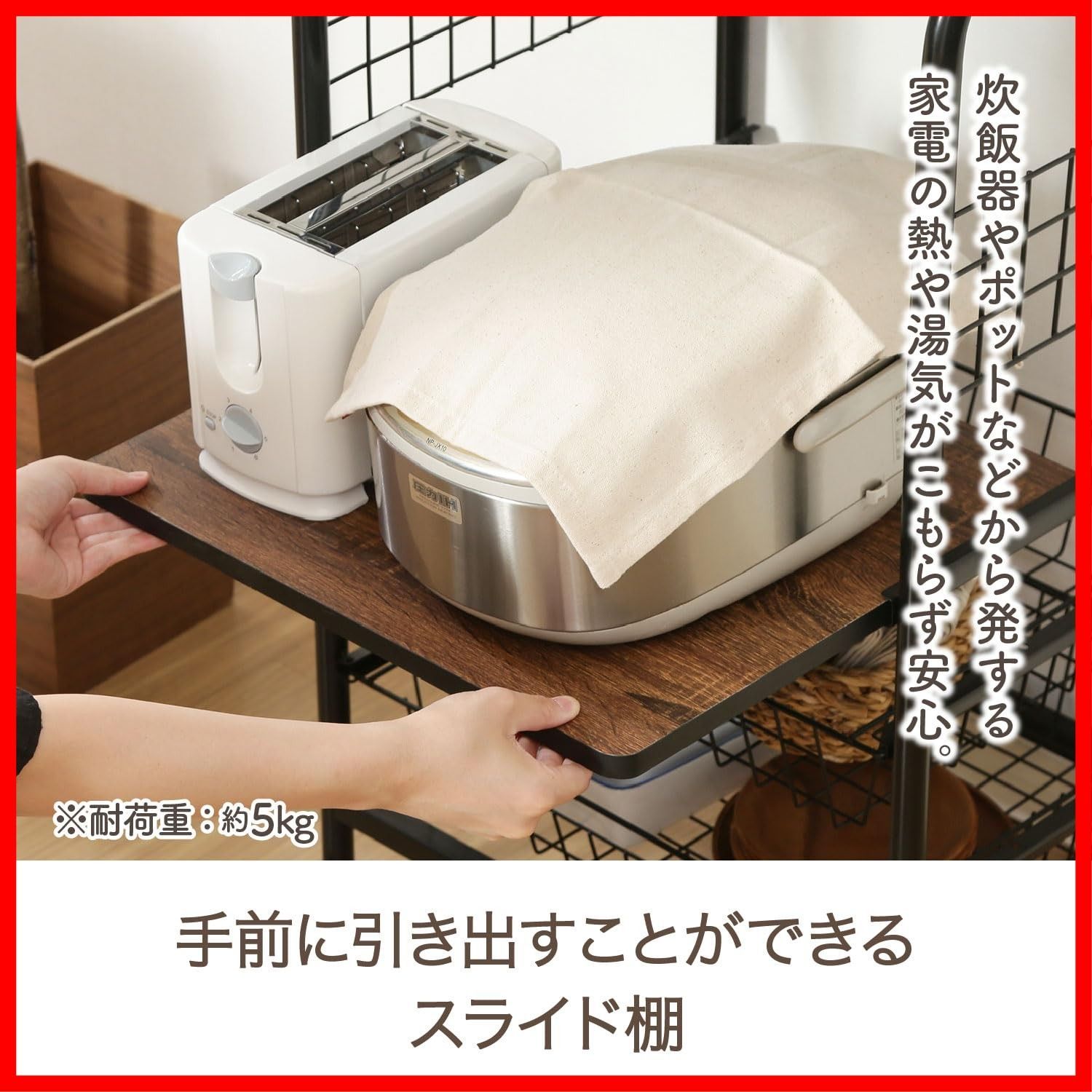 不二貿易 レンジ台 キッチンラック 幅51.5×奥行41×高さ140.5cm ブラック ブラウン スライド棚 収納 レンジワゴン キャスター付き 14637