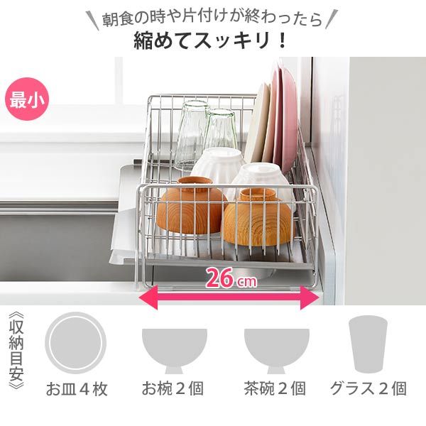 ●スライド式だから洗い物が増えたら広げて大容量に収納できます。