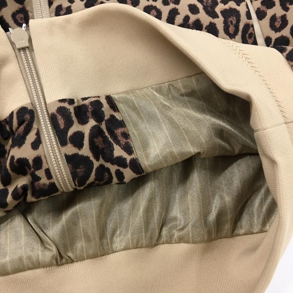 パーリーゲイツ ジャケットブルゾン ベージュ×ダークブラウン レオパード柄 ロゴ白 レディース 0 S ゴルフウェア PEARLY GATES