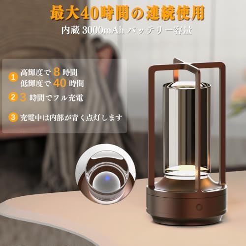 【長時間使用&急速充電】充電式テーブルランプおしゃれには、3000mAhの高品質なポリマー電池が搭載されており、840時間の連続使用が可能です。Type-C急速充電を採用しており、フル充電にはわずか3時間しかかかりません。(注意:青いランプは充電中、充電が完了すると青いランプは消灯します。)