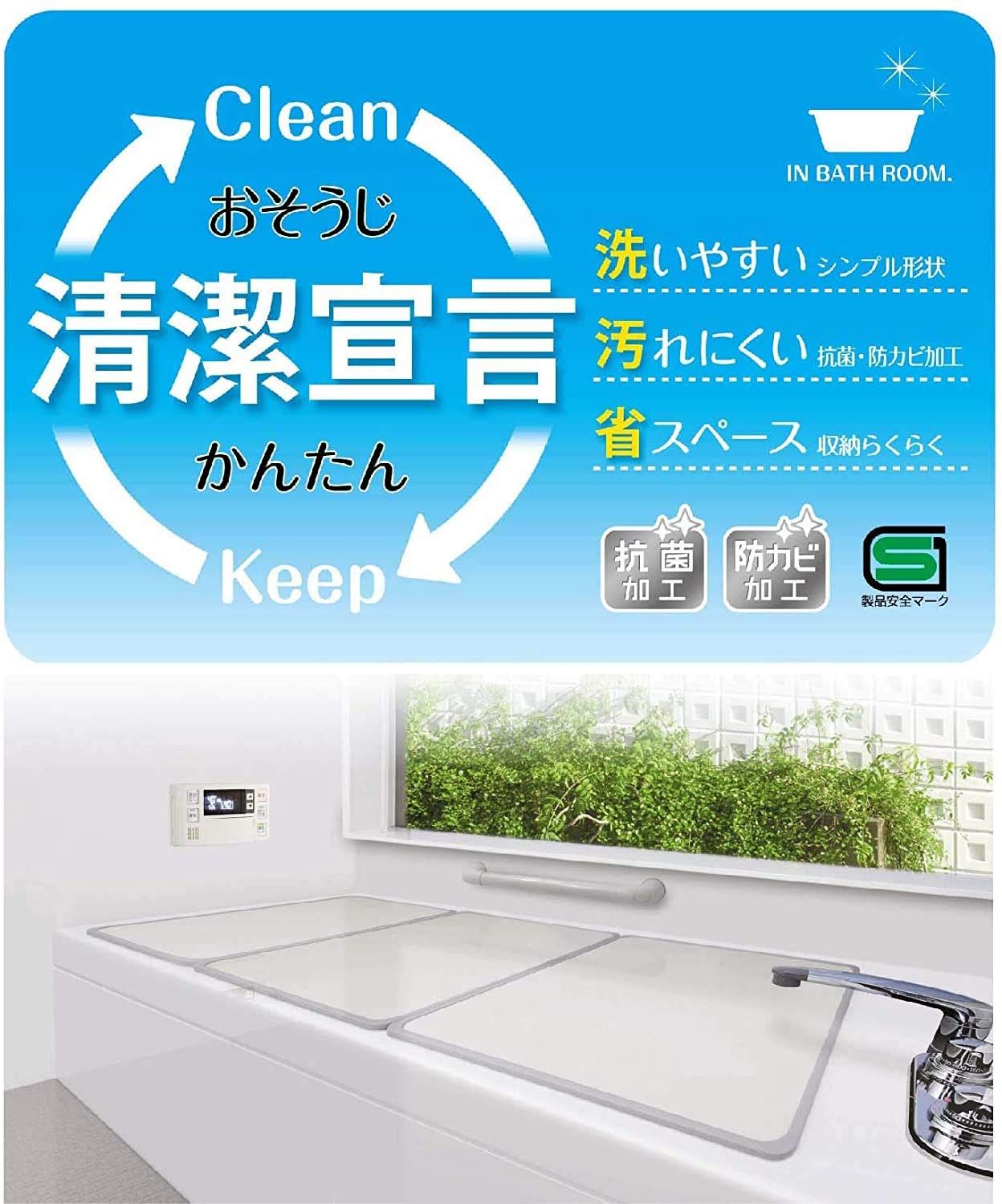 1枚あたり素材・材質:本体/アルミ樹脂複合板(中芯/PE)、ふち/ポリエチレン原産国:日本サイズ:浴槽幅80×長さ140cm用(78×46×3枚組)重量:3.65kg材質:本体/アルミ樹脂複合版(中心PE)、ふち/ポリエチレン原産国:日本抗菌・防臭加工