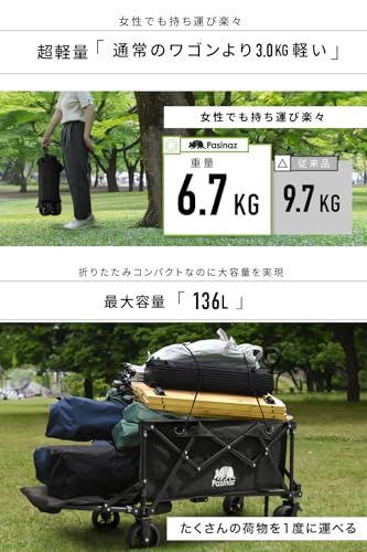 迅速に発送 Pasinaz 最大136 L 後ろ開け 開閉式 アウトドアワゴン キャリーワゴン キャリーカート 片手ハンドル 長物 大容量 ワイドタイヤ タイヤ取り外し オシャレ 折りたたみ 防炎 軽量 コンパクト 4輪 カート キャンプ b 57 ec 23