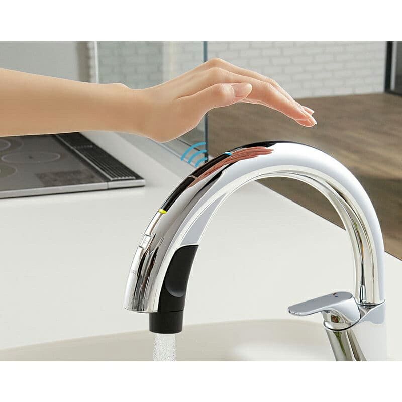 吐水・止水の操作や面倒な浄水・原水の切り替えがタッチレス。汚れた手でも水栓に触れずに操作できます。浄水器付なので、安心でおいしい水をたっぷり使えます。