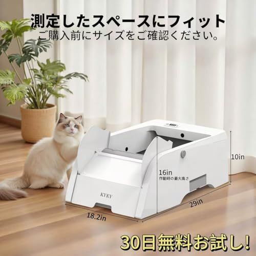 KYKY猫自動トイレ アプリ遠隔操作 な全自動スマート猫砂盆 猫 トイレ 大きめオープン設計で多頭飼いも安心 猫砂飛び散り防止 挟み込み防止 静音設計 消臭機能 センサー付き お留守番 日本語説明書付きpo b 28 ab 1 8