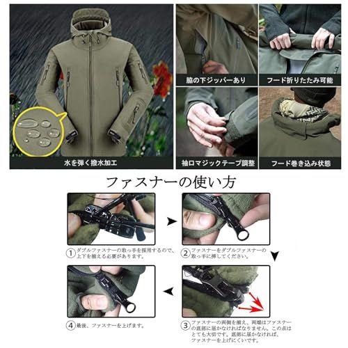 ソフトシェルジャケットメンズ タクティカル ミリタリー ジャンパー アウトドア 保温 迷彩服 裏起毛 上着 多機能 登山 フード付 防水 防寒 アウター バイク 釣り 作業着e 58 a 0 f 587