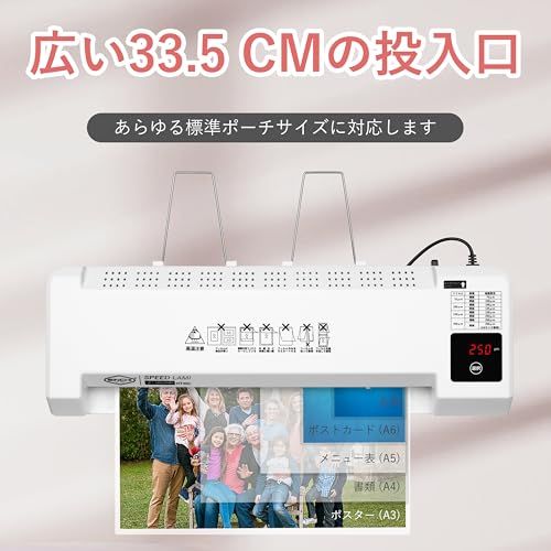 SINCHI ラミネーター A 3対応 75?250μm対応 大径2本ローラー 30?40秒高速起動 4約45秒ラミネート LEDタッチパネル 厚さ調整機能 詰まり防止レバー 自動オフ機能 100μmフィルム &クリーニングペーパー付 学