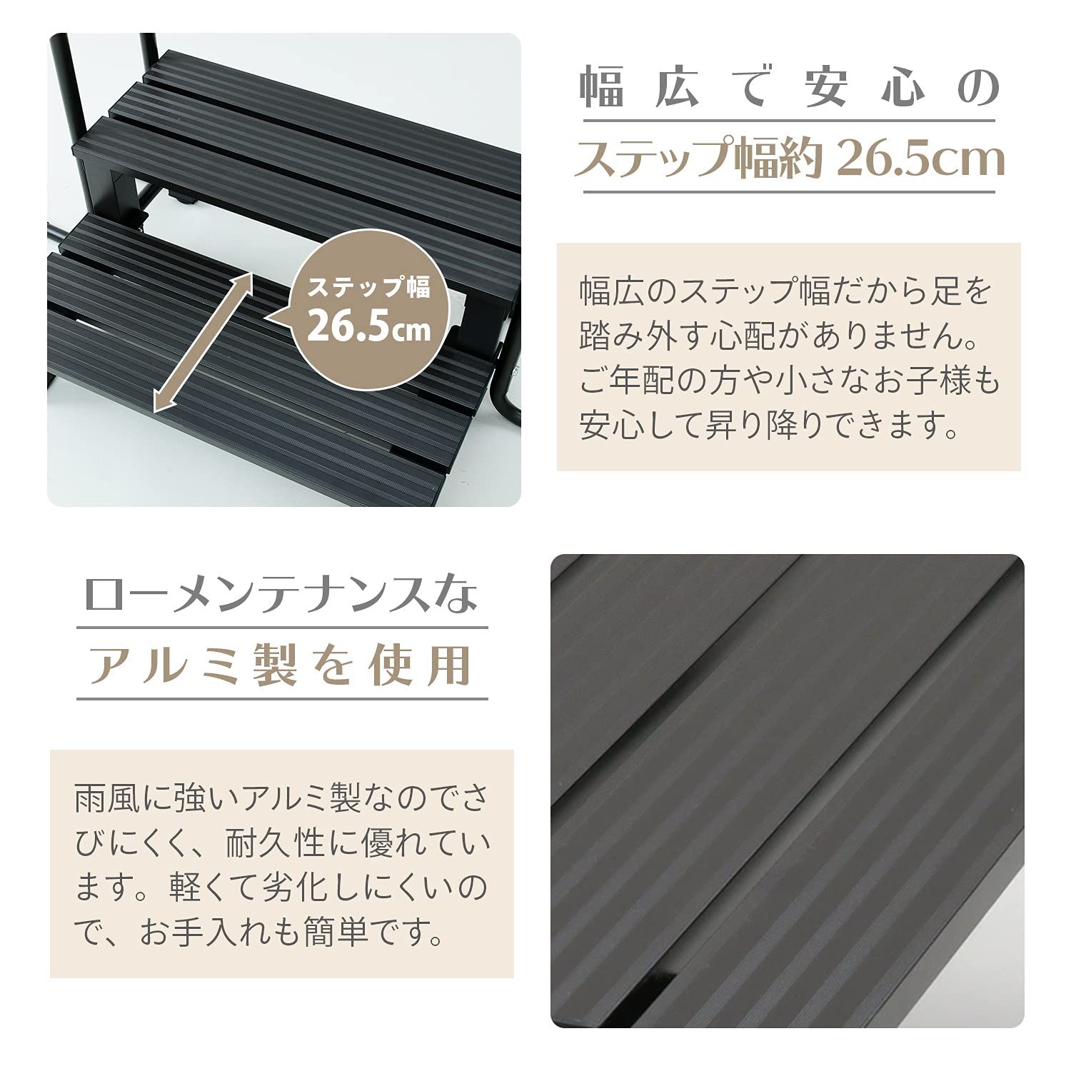 ステップ高さ:約16.5cm(1段目)、約32cm(2段目)